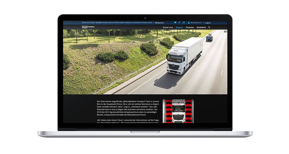 Ob Fahrer, Unternehmer oder einfach nur Fan – bei RoadStars bekommt jeder genau die Informationen, die er braucht. Mit täglichen Updates sind alle immer auf dem neusten Stand. Spannende Einsatzreportagen, Videos, exklusive Aktionen und Social-Media-Funktionen laden zum Mitmachen ein. RoadStars steht allen offen – durch Kommentieren, Bilder hochladen, Chatten oder Inhalte teilen kann jeder ein aktiver Teil der großen Community werden. RoadStars ist in 19 Sprachversionen verfügbar.