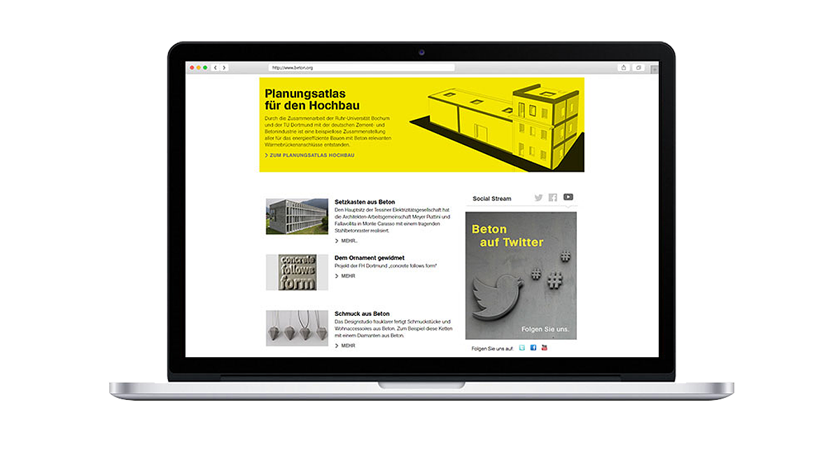 Für alle, die mit zementgebundenen Bauweisen zu tun haben. Mit der beton.org, der Informationsplattform der deutschen Zement- und Betonindustrie, stellt das IZB Fachleuten und Laien gleichermaßen Informationen zum Bauen mit Beton sowie aktuelle Nachrichten zu Planung und Anwendung zur Verfügung und gibt Hinweise zu Veranstaltungen, Designideen, Literatur und neuen Architekturen bzw. Bauwerken.